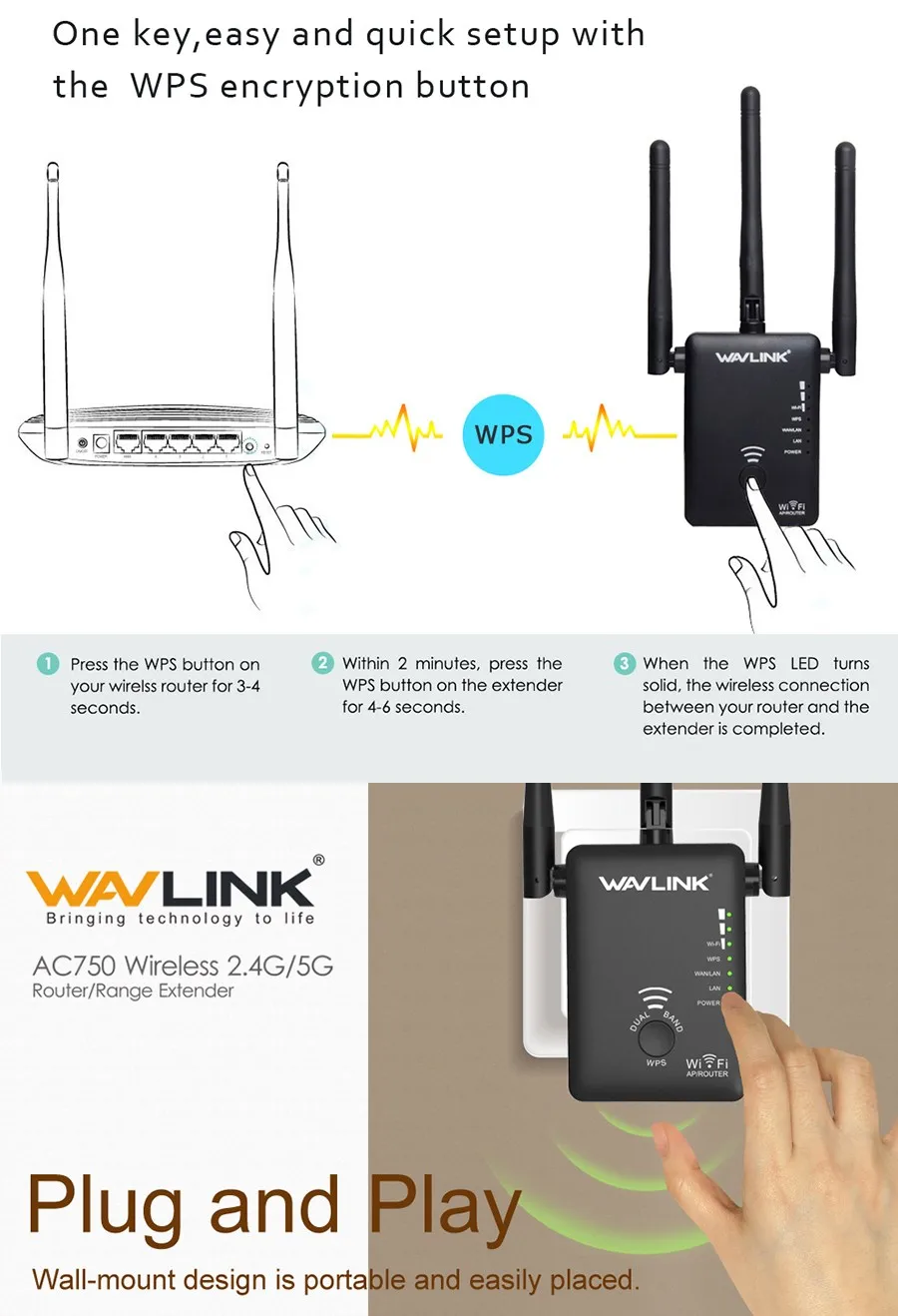 √WPS quick setup button- One key, easy and quick setup with the WPS encryption button.